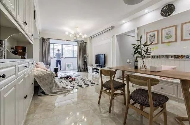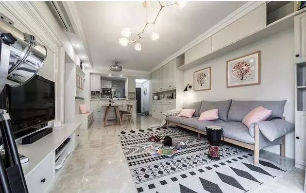 1、客厅并非一定就需要茶几,多点和孩子的互动空间未尝不可,一个茶几占地方,还容易磕磕碰碰,索性就不买茶几了,这样看起来房子也会显得更大~