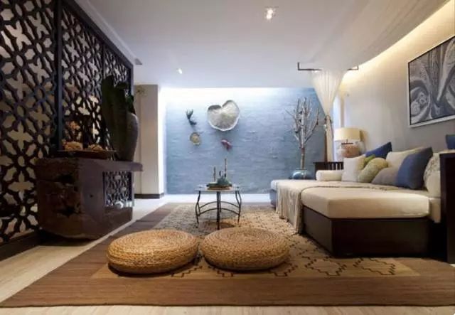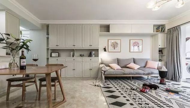 围着沙发的靠背,定制一个时尚的矮柜来完成储物,瞬间时尚。