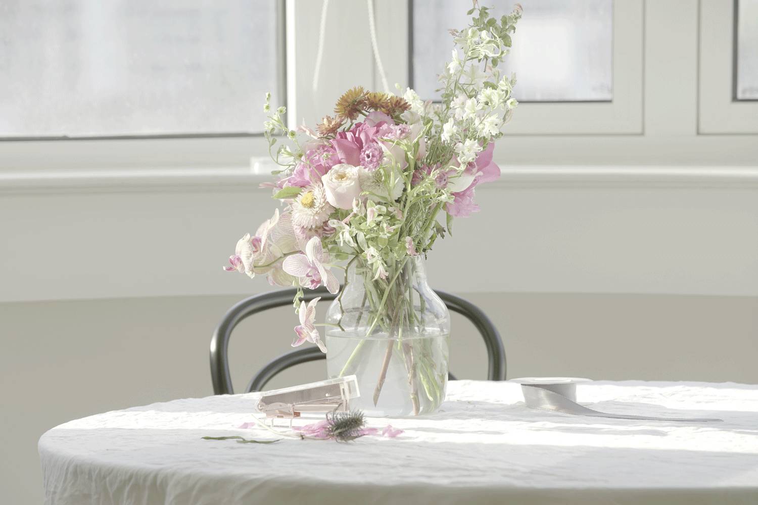 而且小远家的工作区域也和厨房一样是敞开式的,其实她在家的工作区域是移动的,有时候在餐厅,有时候在客厅。插花这件事,随着天气和心情,想在哪里都可以。