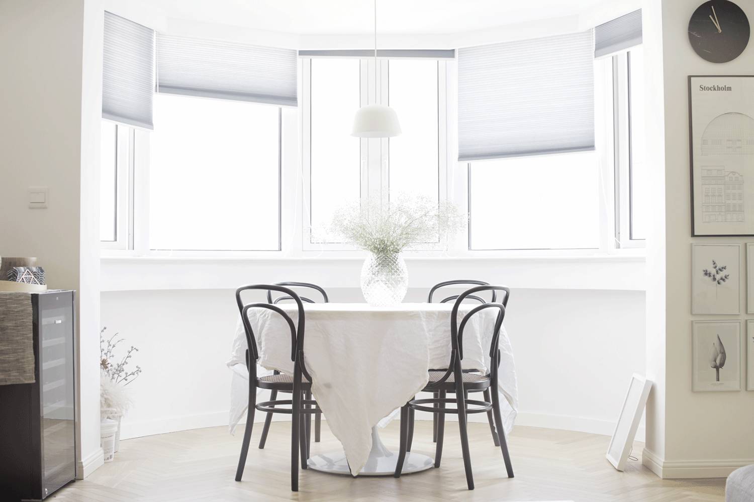 弧形的墙面通常是装修设计中最让人头疼的区域,总感觉“华而不实”,而小远家的设计特别巧妙,在圆形阳台的中心放了一张圆桌,贴切不浪费面积,而且变成了充满阳光的插花区。
