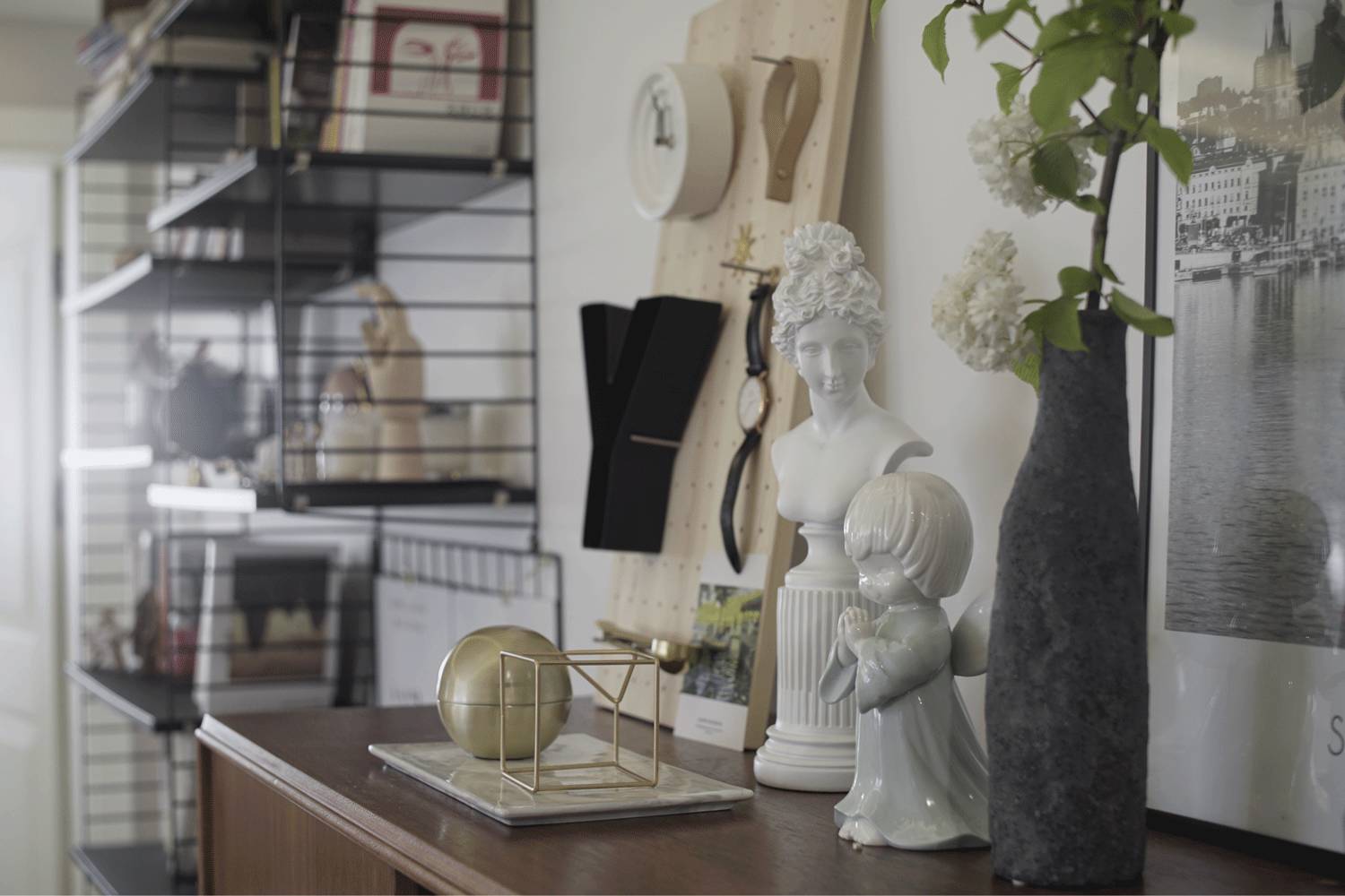 比如搭配一些金色系的小物件,用金属的色泽点亮整个空间,再多点缀一些植物和鲜花。这是她的本行,运用起来自然是得心应手啦。