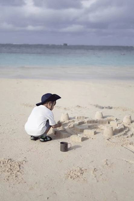 小雨终于能接受沙滩了,可喜可贺!但必须还得是穿着鞋哈哈~沙堡堆得很不错,但比起沙滩他还是更爱泳池啦。有看到沙滩上的咖啡杯吗?到哪都不会忘的才是真爱!