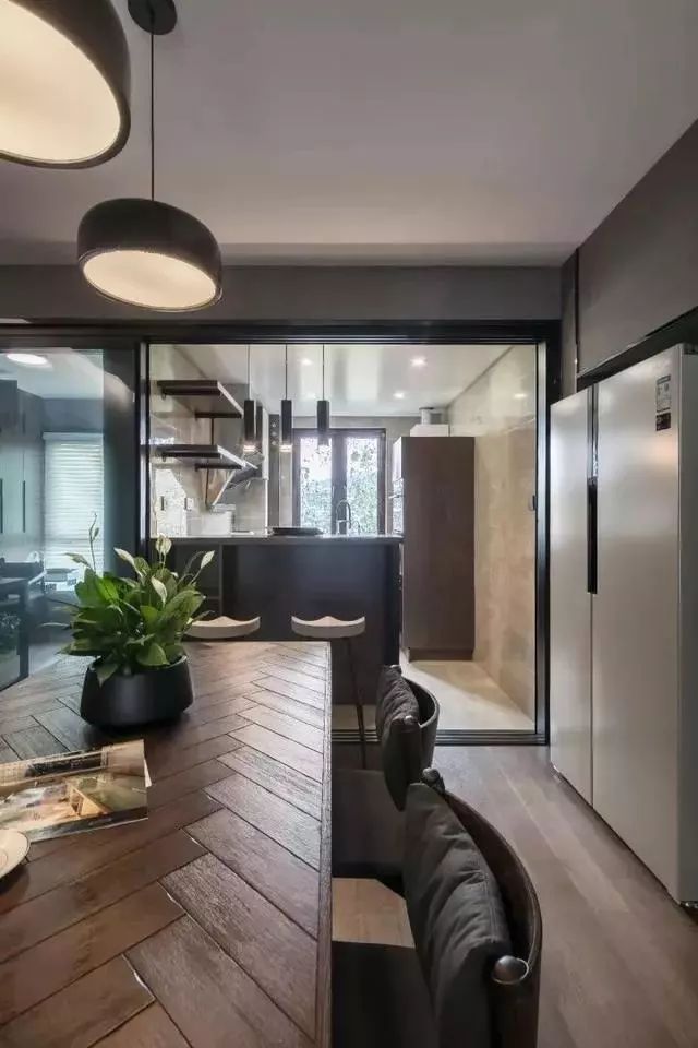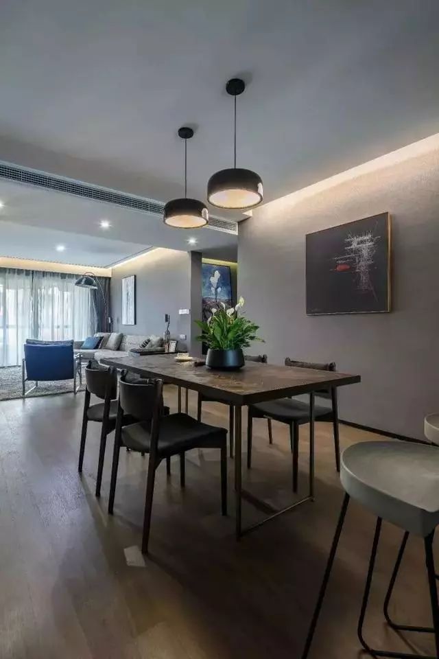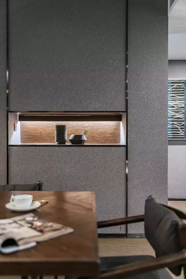 入户黑色为主调,更显深沉、内敛、静谧,彰显深邃经典的居家格调。