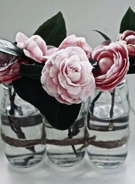 山茶花要与绿叶相称,单朵装饰更显得清新脱俗。