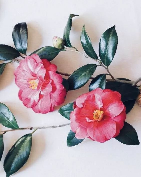 山茶花总是像个温柔又娇丽的女子,有着艳丽的花瓣,却也不缺叶的翠绿,艳而不妖,有种迷人的贵族气质。