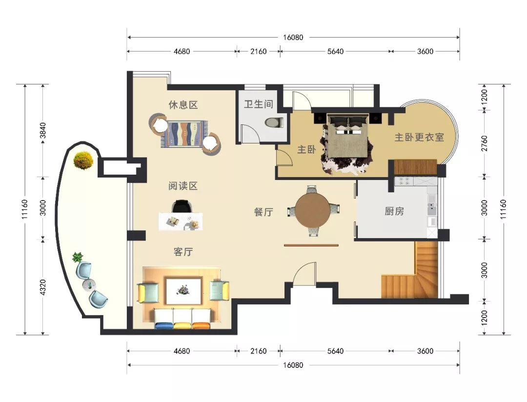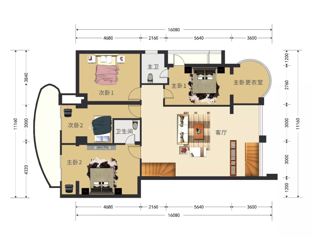 由餐厅旁的楼梯上去,便是家里的二层空间,面积大约75㎡。