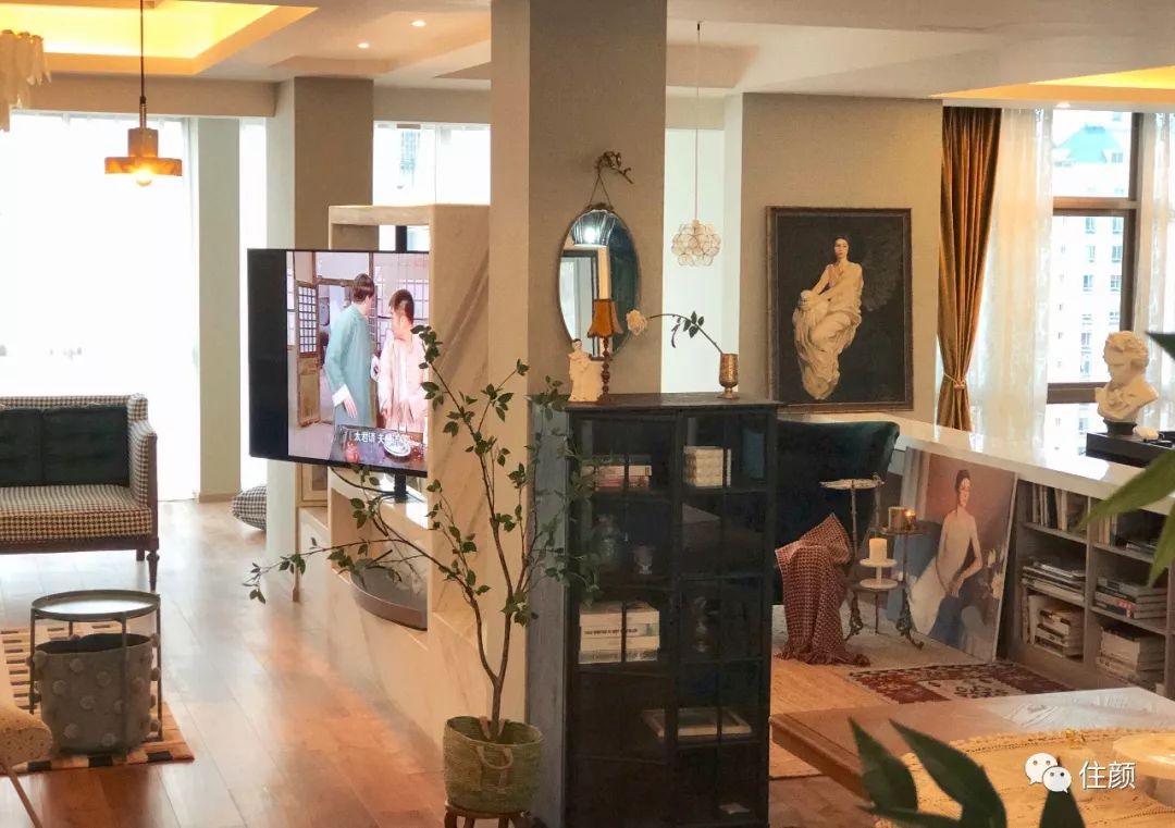 中古家具搭配自己热爱的收藏画,360㎡的三层半复式变成了屋主人的私人展厅。时不时为同个画框搭配不同的画,在平凡的日子里热腾点儿新花样,就是屋主林狒的日常。
