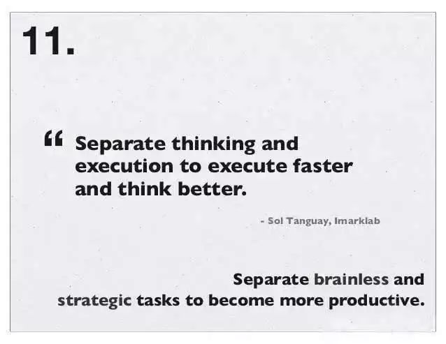 将不用思考的工作的和需要战略思考的任务分开来,会让你变得更有效率,产出更大。