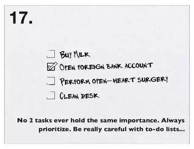 从来没有两个任务会同样重要,总会有个更重要,你需要更仔细地考虑待办事情列表。