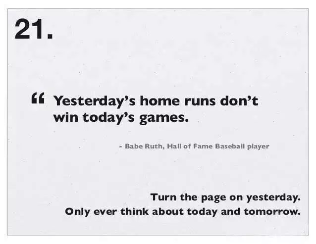 告别昨天,只考虑今天和明天。昨天的全垒打,赢不了今天的比赛 。