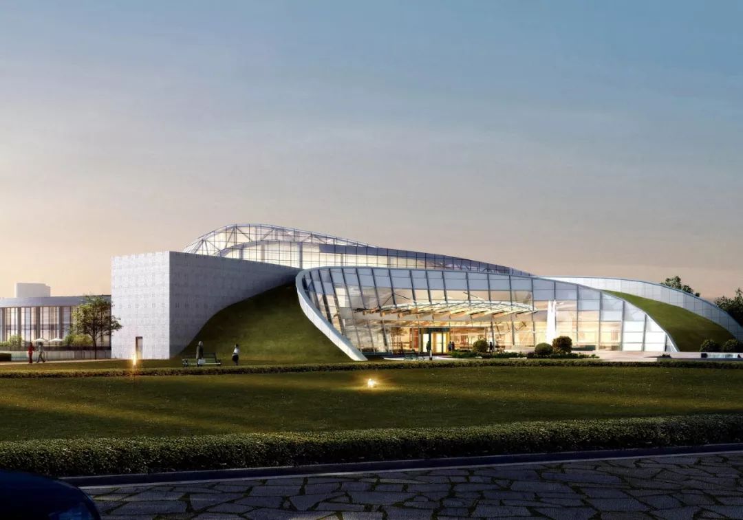 两座不同形态的曲面建筑中