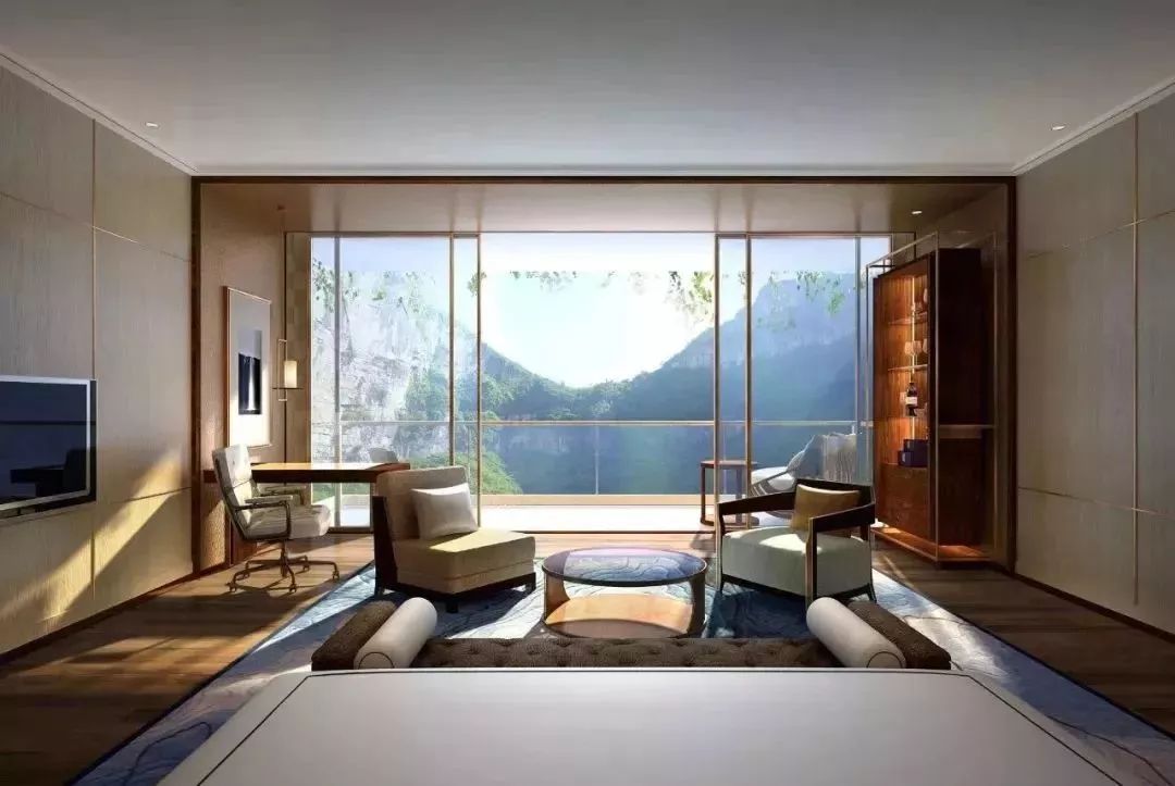 所有酒店客房均沿崖壁而建