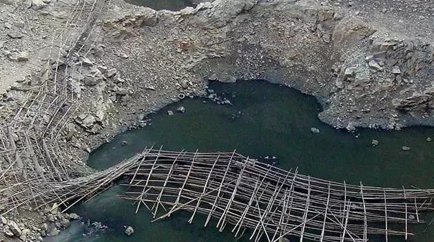 依附于深坑崖壁而建