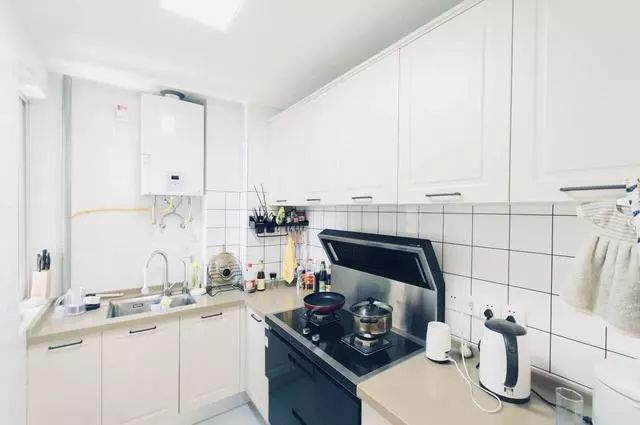 里面是厨房,使用了集成灶,这样能够为厨房节省不少的空间,同样房间整体依然是白色为主,这样也看起来显得干净优雅。