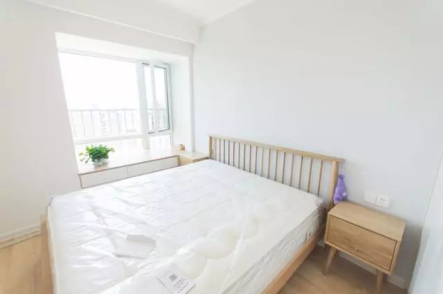 卧室里边也是一种简约大方的感觉,在飘窗那地方,做了一个飘窗柜,原木的质感,能够为家庭带来一种清新舒适的感觉。