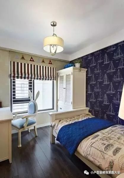 儿童的设计是小编很喜欢的设计,经典的美式风格的装修,但是却在细节上突出儿童房的活泼感。