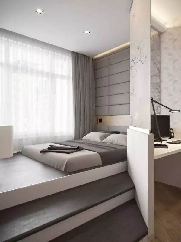 对于小户型而言,在空间面积受限的条件下,利用节省空间的地台床来满足客人临时居住的需求,无疑是一个很好的解决办法。