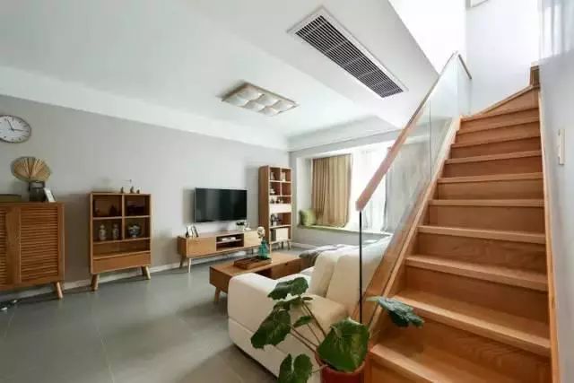 原木色的楼梯搭配上玻璃扶手,显得很时尚,而且脚踩上去后会感到非常舒服。