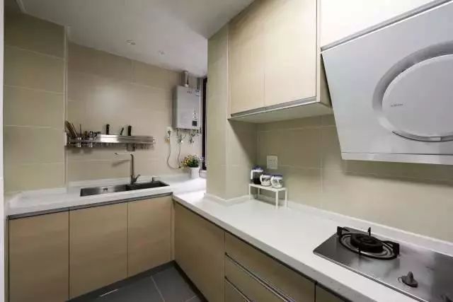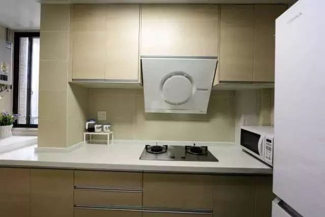 橱柜与墙面使用的是同一色系,整体看上去很协调。