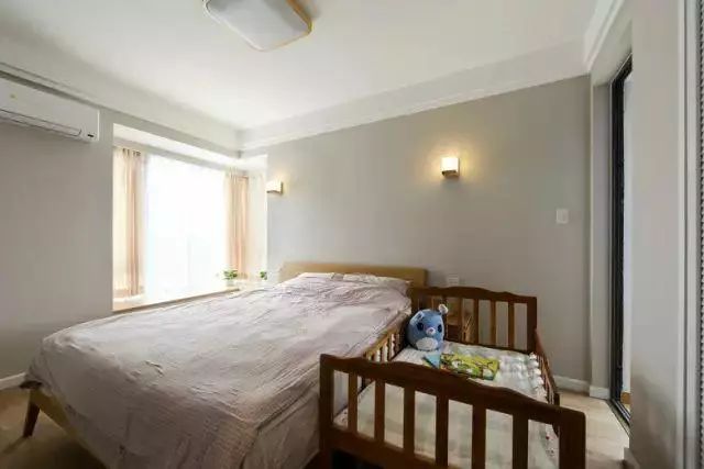 主卧的床边放着一个儿童床,这个搭配很接地气有没有!
