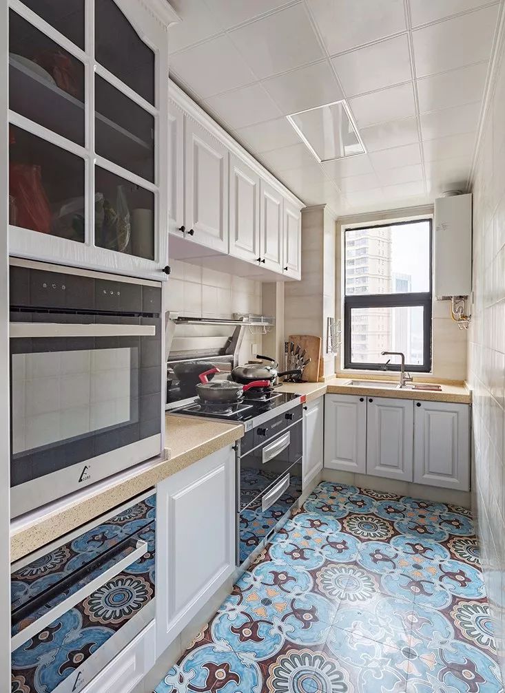 不过如果厨房实在是太小了,还是考虑减少一边的橱柜,做成双一字型或者L型吧。