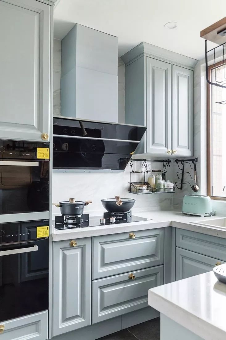 本来厨房就狭小拥挤,如果电器的摆放位置不好好规划,把微波炉、烤箱等直接放在操作台面上,无疑是非常占地方的,会让厨房显得更加拥挤不堪。这时候可以考虑厨房电器内嵌,节省了不少空间。
