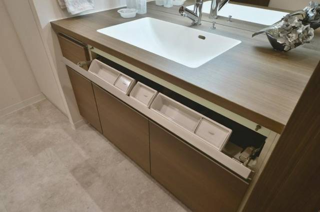 通过有效利用洗脸盆前面的死角空间