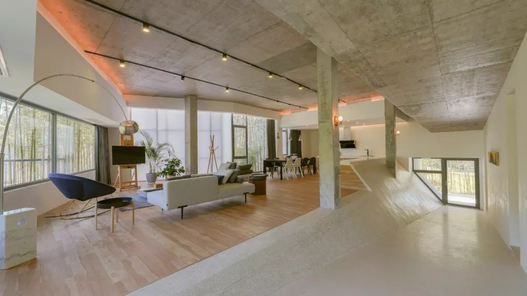 这里原来是一个笋厂,为了保护自然环境而停产闲置,设计师王健尽可能地保留建筑原有的走向和结构,从空间的设计到装修装饰到家具器物,尽显创意。