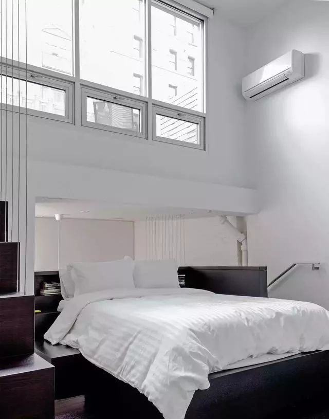 开放式的设计看起来比以前大了很多,屋顶露台上的窗户让整个空间采光变得超好,悬臂床看起来也很特别。