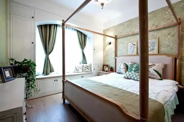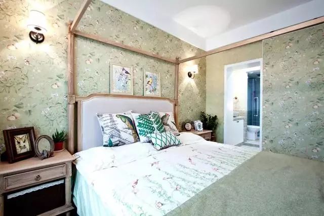卧室的装修也采用了同色系的搭配,显得好清新~