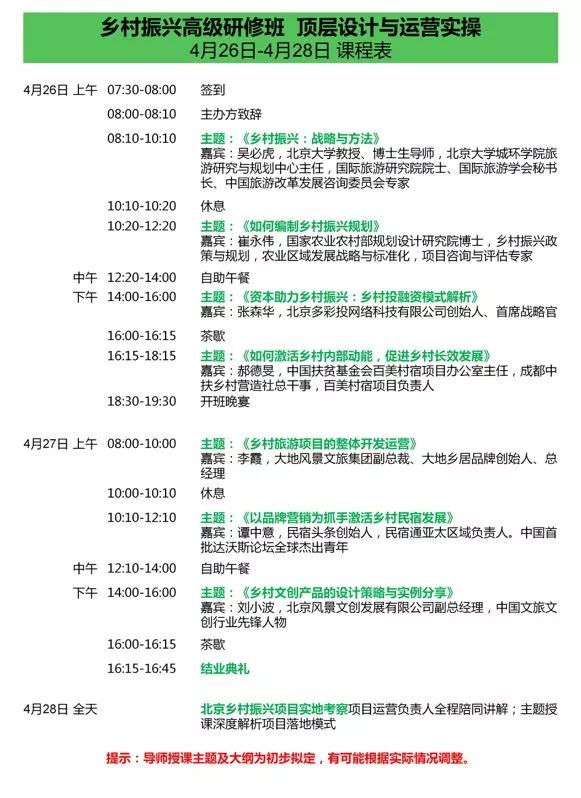 具体安排:见下图“乡村振兴高级研修班课程表”