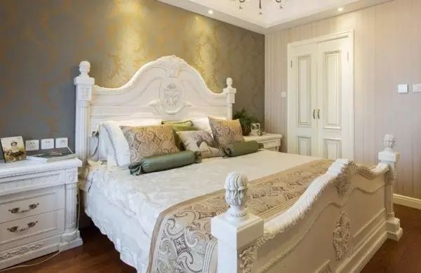 卧室整体采用舒适的白+绿,舒适又不失格调,墙面的双开门很是优雅。