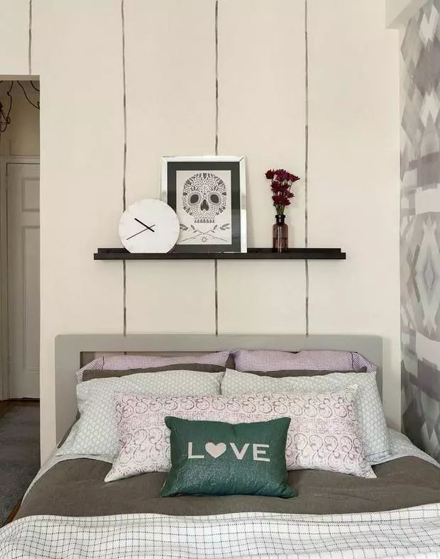 床头采用隔板的方式作为装饰与收纳,一举两得。