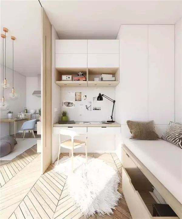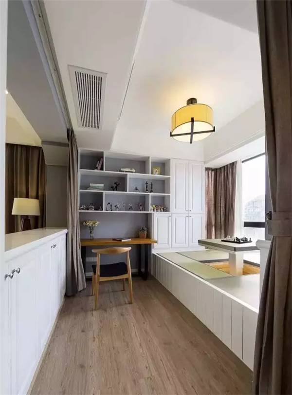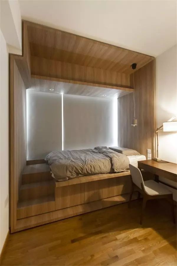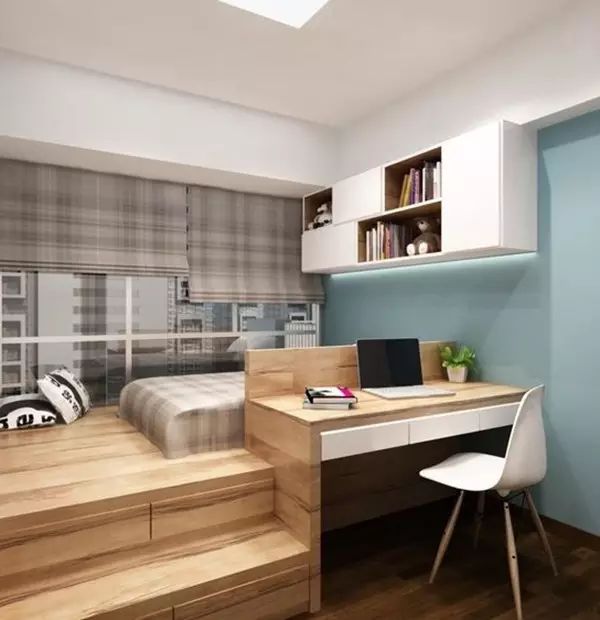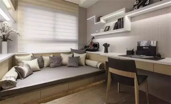 像是家里只有两个房间的小户型业主,就可以把次卧给装成榻榻米,连上书柜、书桌,以后就是孩子最好的学习角了。