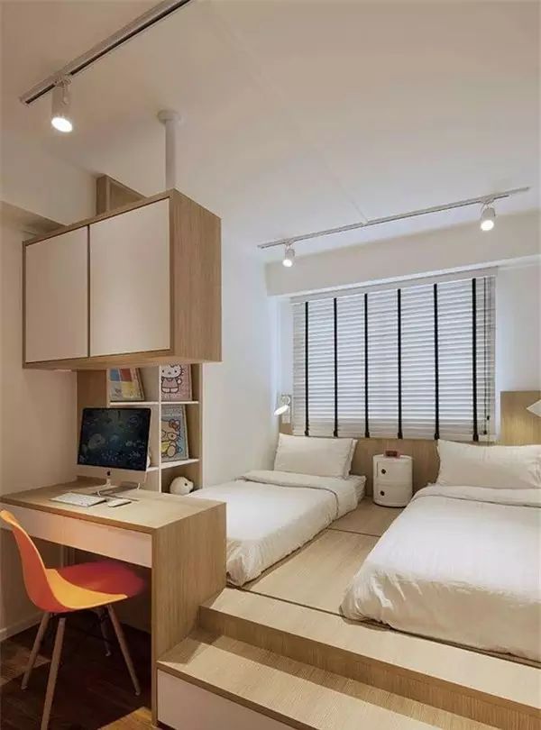像是家里有两个宝宝的孩子,就可以把整个房间都装成榻榻米,放下两张小床,就不用做两间儿童房了,当然,一男一女肯定没办法~