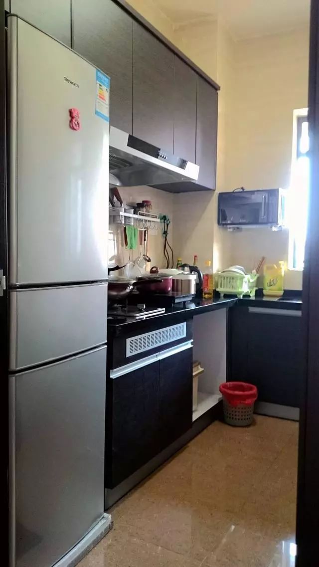 怕油烟会跑得到处都是,所以油烟机装得下了些,本来应该把橱柜做到顶的。