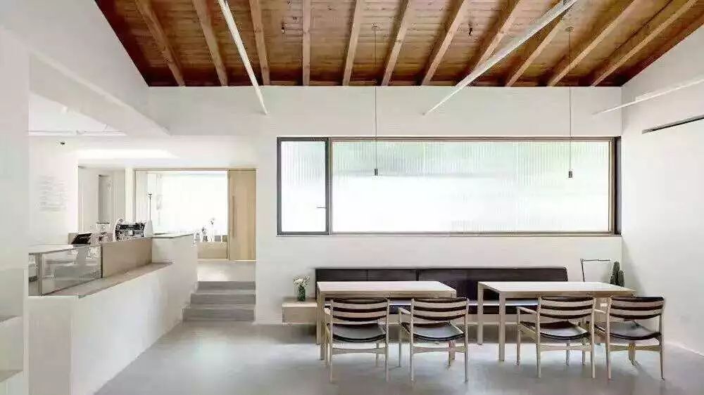 建筑设计上,课间建设面积2600多平方,包括4栋小房子,三明治结构,一层与顶层都是公共区,利用空间动线引导客人从房间走出来。极简明快的建筑外观,轮廓硬朗,外墙是“妖娆”的蓝绿色,被设计师戏称为“工业小清新”,室内大面积留白,白色与原木色系为主,色调清爽干净。