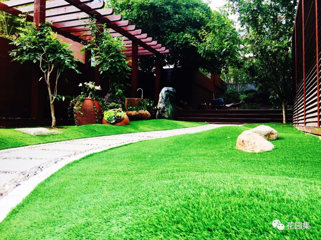 所以设计师在勘察现场之后,综合考量各个元素决定草坪使用假草坪铺设,这可以有效避免以后庭院草坪的维护与打理。