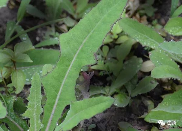 苦荬菜和蒲公英有点像,都是贴地呈莲座状生长,但有一个小特征可以轻易区别:苦荬菜的叶子边缘是不规则的锯齿状,掰断了迅速有白色浆汁流出。而蒲公英是非常规则的,只有轻微的浆汁渗出。