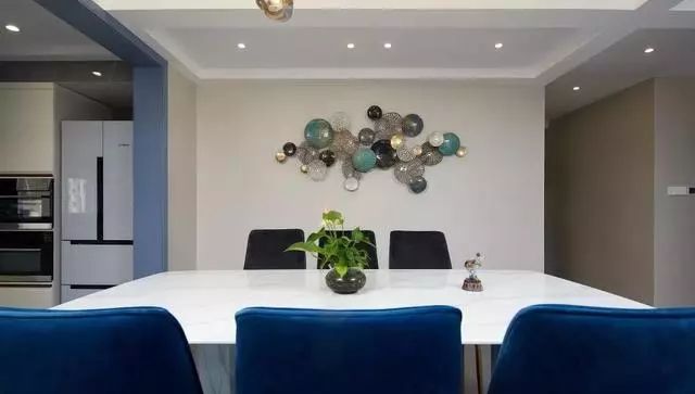 餐厅与厨房之间也是大胆的不做隔断,只用垭口隔断~