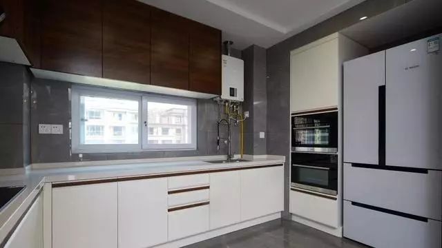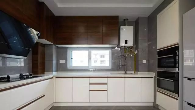 下白上深木色的橱柜具有很不一样的视觉体验~