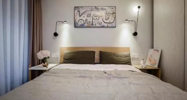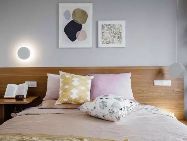 最喜欢的是主卧,床头用原木护墙板打造,靠背可以买成品的软垫,这样可以经常更换,很喜欢左边的这个温馨的小壁灯。墙面简单的装饰一些挂画就很温馨了,特别舒适惬意。