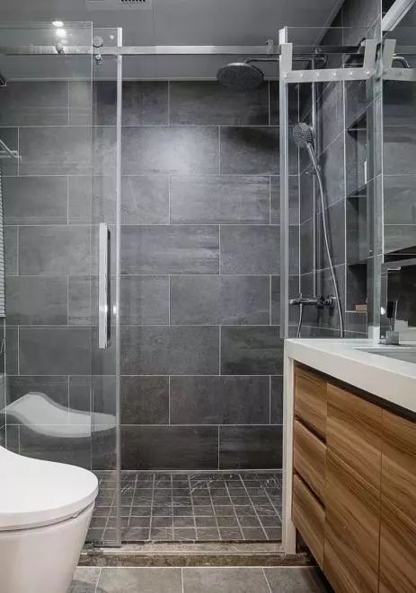淋浴房做了干湿分区,很实用。地面还特地定制了石材,可以加速干燥。