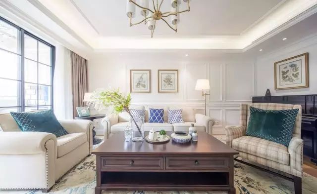 ✪沙发背景墙安装了具有实用性和装饰性的护墙板。象牙白沙发具有淡雅的韵味,金边框植物装饰画起到了陪衬的作用,有一种高级感。