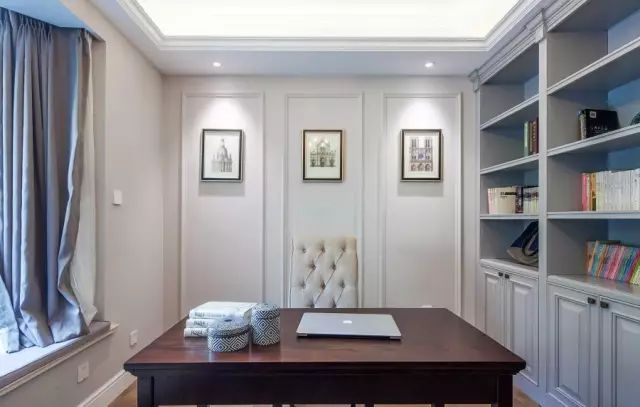 ✪书桌摆放在书房的正中间,左侧摆放书柜,右侧是明媚的飘窗,一切都那么刚好。