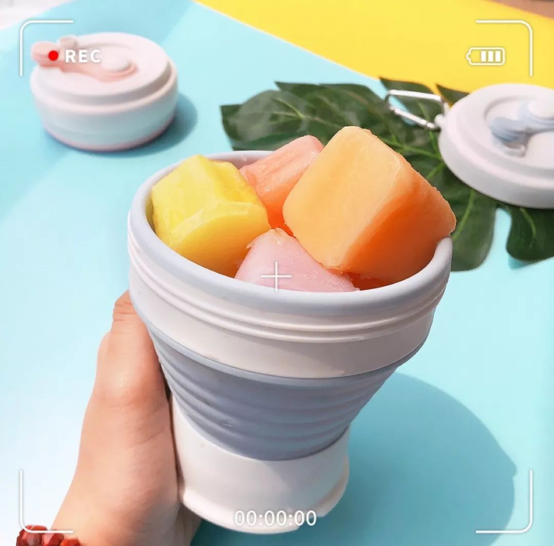 伸缩水杯广口设计,用来放冰块、雪糕等小零食也非常方便,颜值满分