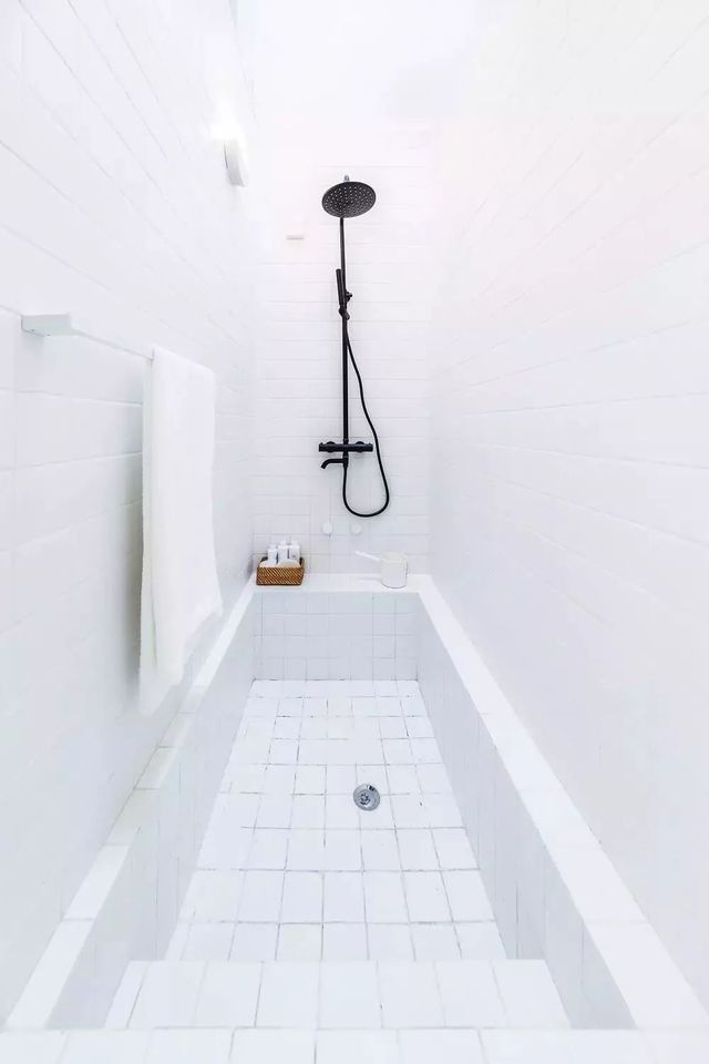 在施工过程中,设计师让工人在室内靠近里墙的一侧挖出了一个长方形的大坑,宽度110公分、深度55公分,这就是新家中的浴缸!而且在浴缸的上方就是一个电动天窗,泡澡时,看着蓝天白云或者星光洒落,都为这个家赋予了最特别的浪漫。