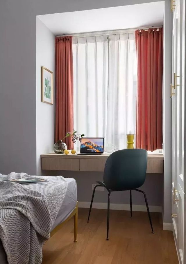 靠窗的位置打造成书桌,采光好视野好,学习阅读时心情也会好一些。