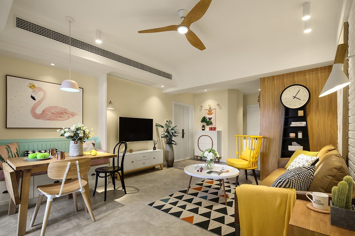 明黄色搭配原木风,简单的墙面装饰,无一不体现出设计师独特的审美
