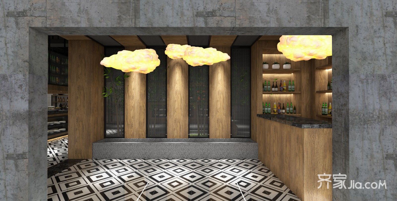 灯光设计以暗为主,降低就餐人员的节奏,慢慢就餐,这也是目的
